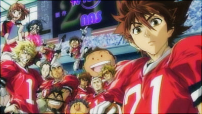 Eyeshield 21 is an anime about a guy (Kobayakawa Sena) who started playing American Football in highschool because of Hiruma and Kurita. He was bullied when he was young, and because of that he has the ability to be an amazing running back in football. I love this anime because it shows all the trials they go through and they dont win every game. But they put their hearts into it, and its a very fun anime to watch! The characters are great, the story line is good, and its funny! If you watch anime then you should watch this series!