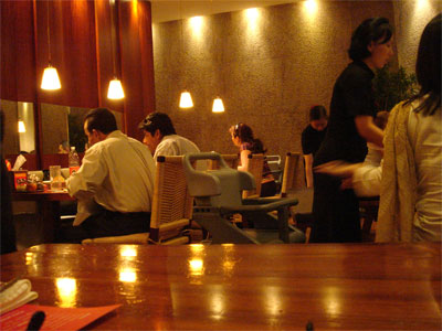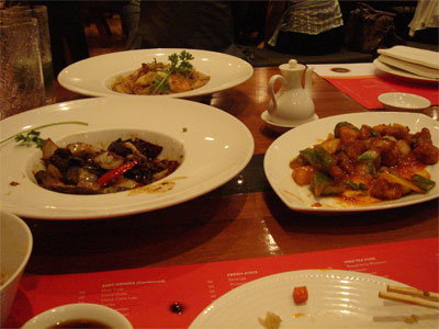 This restaurant is located in Emirate Towers, and it conveniently located on the ground floor. Its a mix of Chinese and Thai food. The atmosphere is very nice, and they have a few tables for people to sit at, but usually you sit on benchs with other people so its pretty different.When you order there is chart and a pen for you to Mark what you want. There are lots of waitresses running around left and right, so its got a fun feeling to it! I ordered a different variety of dishs on the menu. And I got a 7-up, just really felt like it. They had a lot of juices to choose from, but I didnt feel like it. The starters came out, and we started grubbing, then the food started coming out 20 mins later. We were hungry as hell!