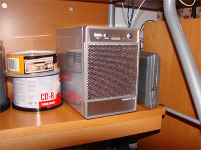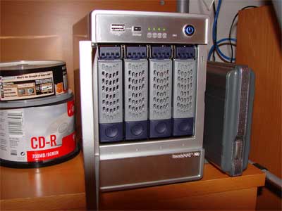 After delivery a few weeks ago I didnt have time to set it up. It wasnt a plug and play type Network Area Storage. So I was putting it together, and it was supposed to have been burned in. I got it from Eaegis and it took about two minutes to boot up. And for a while I couldnt figure out why I couldnt use it or edit any shares. Shares are folders on the Network Area Stoage. And it was already setup as X-Raid with redunancy enabled. But for some reason it wasnt working and it was telling me that one of the Hard Drives was faulty. So I decied to reset it to the factory default and restart installation from scratch. So I started the setup from the beginning with the X-Raid setup and letting the Infrant work on the reorganizing and syncing the four 400GB Seagate Hard Drives. It took about 6 hours and 40 mins for it to finish, and in the manual it said that it would take up to 8 hours. Then everything was operating perfectly, with a X-Raid setup on a 1.6TB NAS you would have 1.1TB for storage. With the redundant setup you dont have to worry about a bad hard drive. So I have started moving things to it since my last problem. After a good amount of use I will post a full review