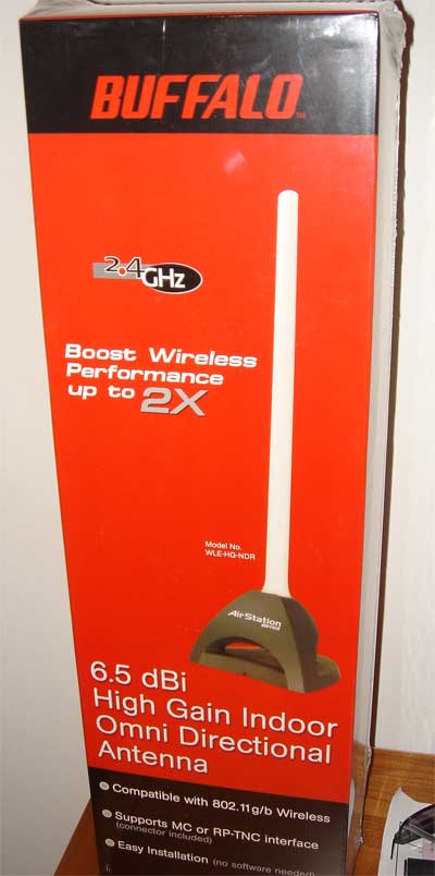 Im adding this to my new Buffalo Router that I havent even opened yet. Its fantastic that I got all the pieces together. This way I can see how much better the connection will be across the house. I really want to get an outside antenna but that would require some drilling. I dont think they would be too happy about my drilling throug the window frame or wall just to increase the signal across the house! But if this antenna works out then I might try to figure out how I can get a high dBi antenna for the exterior so I can get the signal all the way to the basement. This is requiring a lot of testing and I feel like a complete nerd, and Im looking forward to it!