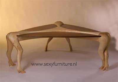 I probably would never get something likes this, but I just saw these in an email and I have to post them up for people to see. Please click below to see the pictures, but be careful that no one is looking over your shoulder. I was laughing my head off when I saw this stuff. And the URL is blocked by Qualitynet. Whoever made this furniture has one hell of a perverted sense of humor! I wouldnt know what I would do if I walked into someone’s place and this was their funiture! hehehe