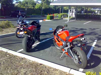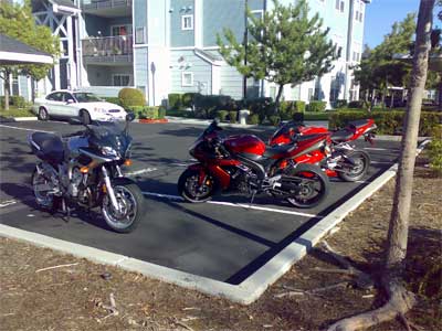 After a good day of riding in the San Francisco and around the 9 me and Eric headed back to the apartment to wash up the bikes. It was fun as hell riding around all those corners, but the one thing that got on my nerves was that the bikes weren’t clean. So we parked the bikes next to the car wash area and we filled the buckets with water for the sponges. I was using a grime spray on the bikes that sits for 2 mins then we wash it off with the hose and then we go over it with the sponges. It was great getting down and dirty, also a little wet… well very wet. I had a good spray that I got from the San Jose Yamaha Dealership, the sprae parts guys there are great, and it gets all the oils spots off of any engine part, cleans it right off. After about an hour of cleaning the bikes were sparkling and I was happy as hell! I wanted to give them enough time to dry off. We finished just as the sun was setting what a perfect day!