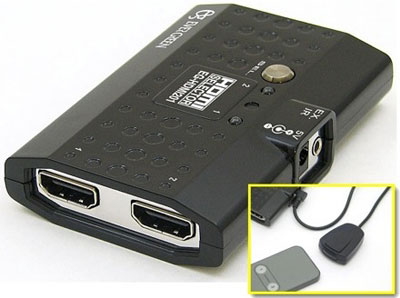 This is one hell of a cool small HDMI switch and its 1080p! And you can connect an Infrared connection to it which can be hid somewhere! The remote is small and has only two buttons. This machine is only currently available in Japan.