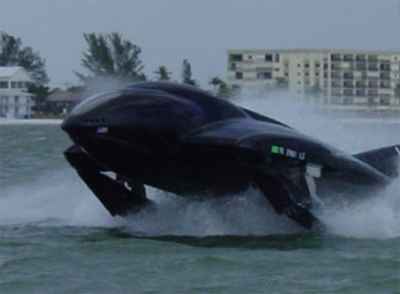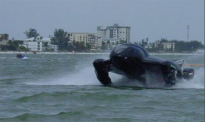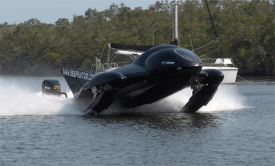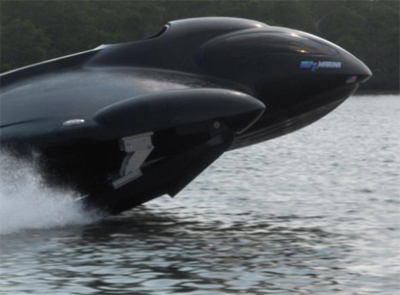 This is one insane looking machine! It travels extremely fast on the water surface with a full fledged suspension system to cushion the ride correctly while going are triple digits speed. Usually on water your banging against the water especially at highspeeds, it gets a little rediculous. So they have developed this 5 seater which seems to do an amazing job of just skimming over the water and making it seem effortless. Its not on sale yet, but they might be employing for the Navy Seals. And they currently developed it with an inboard engine.