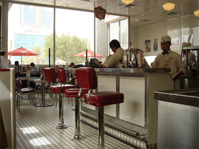 8:00am I woke up and I had to wake everybody else up for our meeting, we finished our meeting around 2:00pm and then we headed towards Seef Mall. I had no clue where everything was but the roads are pretty nice and there is a lot of construction. Also people seem to be well mannered on the road, everyone was signaling and pretty nice towards each other. When we got to Seef Mall we didn’t go in we just went straight to Johnny Rockets to get a bite to eat before heading back to Kuwait.