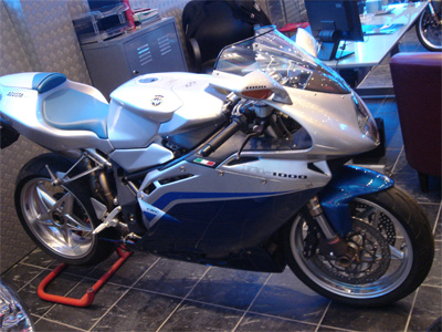 After riding this weekend with the MV Agusta group I decided to visit their new showroom with Mark and a friend. Our friend was thinking about getting an MV Agusta Brutale and they had a nice list of machines over there:
