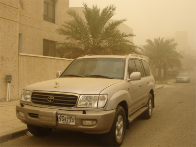 There is no real explanation that I could come up with this morning for this sandstorm. I woke up at 6 am planning to ride for at least 1.5 hours before going to work and just enjoying the day. I woke up and opened the curtains, when I saw what it looked like outside I checked my watch to make sure I didn’t wake up too early. Everything looked dark orange from my window and all hopes of me riding today literally went out the window. So I decided to watch some anime since I was up and entertain myself for an interesting day at work. When I was about to leave I felt that Toyota has already tested the Landcruiser in these types of conditions and I was completely confident in the vehicle, for some reason I think they tested the vehicle inside a volcano before putting in production.