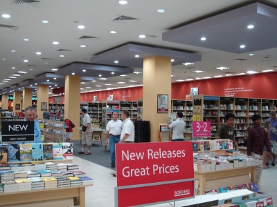 I was walking around in Mall of the Emirates when I stumbled upon Borders as I was walking to the Electronics wing of the mall. I was in total shock and I couldn’t believe what I saw in front of me. I felt like a kid who just discovered the biggest toy store in the world staring right in front of him. The first thing I thought is that now I have a reason to visit Dubai more often. I went straight in and all I wanted to do was buy books and other things, but I had to hold off since I only had a carry on! It was fantastic, I really wanted to just stay there the rest of the day! I was so happy, I just going from section to section checking out the books, I couldn’t believe it. I thought it may be fake and they bought the name without the quality books but I was happily wrong! They had all the books I was looking for and more! I felt I was in my zone, there was a book for every person. So much to see and so little time! It has been open for 6 months, and the last time I visited was July of 06. They have a very large selection of books, and very well presented, its worth a visit.