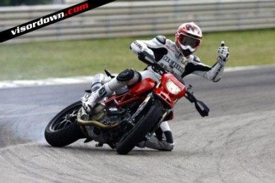Ducati has now released the nutiest machine of their line at this point, the only similarity it has with any other in the Ducati line is the Multistradas engine. And that engine has been modified to suit the punchy power that has been asked of this machine. Its a very light and nimble machine which you can have a fun filled day around every corner you can find. It has mirrors on the bar ends which are usable and can be folded when your traffic. This machine isn’t a supersport so it needs your input to do what you want it to do and it does it really well. With a 130 mph top speed, a very light clutch, perfect fuel ejection and perfectly smooth gearbox are at your control. There are two versions the normal Hypermotard 1100 and the Hypermotard 1100 S the difference is the suspension is modified aiming towards more track use, and the S version has the brakes of the 1098 which give it a major bite and ability to stop where you want. One thing is for sure when riding this machine you will have a wheelie overdose. Just take a look at the YouTube video.