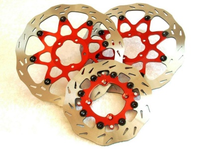 A complete set of front & rear wavy disc set for the Ducati 1098. These discs have anodized red aluminum centers and all stainless steel floating wavy vented discs. They will enhance your bikes aesthetics as well as offering an advanced quality in braking.