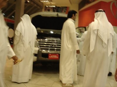 We drove and from the fourth ring road you can see the huge crowd at Toyota, so we went in and parked by Behbehani Porsche instead of their side to avoid the traffic. As I was driving in there were kids asking me if I would sell my Landcruiser, I said yes for 10’500 KD and cash on the spot, they asked what year, I said 2000 Manual V8, then they said have good day! I was ready for them, no way in hell would I sell my Landcruiser!