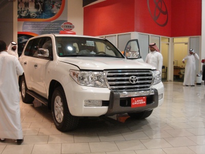 This has been something I have been looking forward to for a while, after work my friend calls me up and tells me Al Sayer brought the new Landcruiser so I picked him up right after work and went to Toyota. He said that its going to be very crowded and there will be people prospecting for the current Landcruiser as you are driving in.