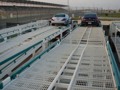 The trailers themselves are high end and have been prepared for very low sports cars, it was very difficult to scratch the bottom of the car while loading because of all the pieces used to angle the vehicles. I’m impressed with the capabilities of GulfRun and Agility to make the transport this way. The only thing I think they need is someone to fix the Saudi check point, there is a difference between doing their jobs and abusing their positions which is what the Saudi Customs Officers were doing.