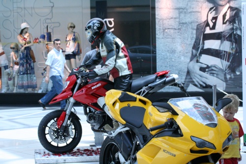 Turns out there were some Ducatis, Maseratis, and Ferraris inside the mall. I was admiring the machines these kids were all over the machines and it was really annoying since they didn’t have any idea what they were scratching. There was a couple of Ducatis, a Hypermotard, Monster, 1098, and the Limited Edition Bimota. Its very nice that they do these types of events in the mall.