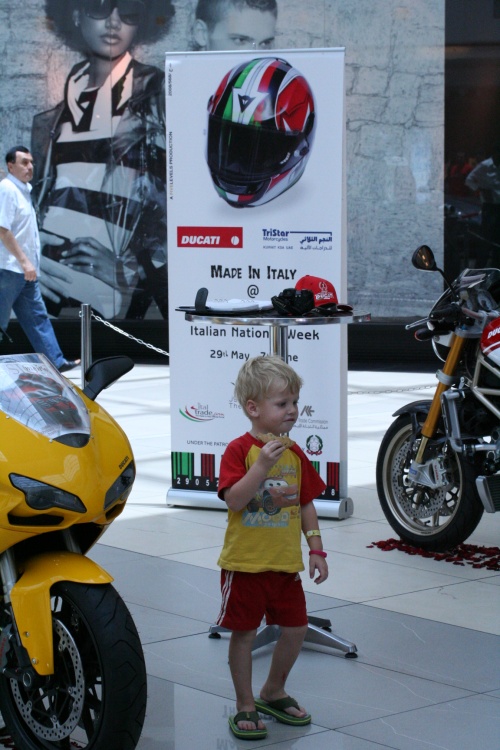 Now this turned out to be interesting event, I went into work early Friday morning to finish up a few things. After that I got a call from the guys that they are heading to Avenues for breakfast, I got there around 10:30 am and we decided to eat at Pauls. Pauls has good service but bad service which is a bit annoying, I noticed that there were Italian flags all over the Avenues but I thought they just made a mistake and forgot the black part of the Kuwaiti flag, but turned out it was a full on Italian Event. Then my friends tell me they saw a couple of Ducatis in the mall so I had to investigate.