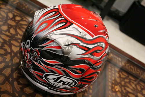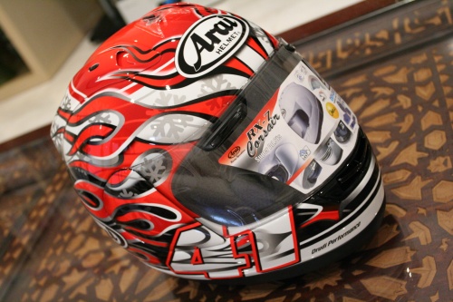 I ordered this helmet and today I saw a nice very large box. I knew what it was but the anticipation was also nice, this is one Arai’s new design and now I have two Haga helmets. The first one I got about three years ago now, and now this one, I’m a fan of Nitro Nori and so I get the helmets. It also helmets that the RX7 line of Arai is very highquality and a perfect fit for me. Now I just want the weather to cool down a bit before I use it, I don’t want to sweat in the helmet from the first time I use it.