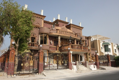 A friend told me there is a very ugly house in Miseela, extremely ugly, and when I passed by I was shocked. I know different people have different tastes but there is no excuse for this atrocity of a house. I feel really bad for the neighbors, they have to live next to this eye sore day in and day out. Its horrid and just looking at it makes you feel nauseated, I can’t believe the amount of statues they have and what they have painted to the outer wall.