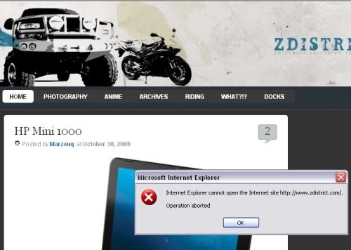 I have been getting emails and phone calls about people having trouble viewing the blog. I didn’t think much about it in the begging, but seeing as that everyone is having the similar problem I just tested it out and it was true. If you are using Internet Explorer then you are going to have a problem, and since it can’t handle an exception it is damn annoying and says that it can’t access the website. If you are using Google Chrome, Mozilla Firefox, Safari, or pretty much anything else you will be fine. There is a javascript running on one of the posts and that is causing a problem with Internet Explorer, it will just take a couple of days and the post will be gone so then people will not have problems viewing it.