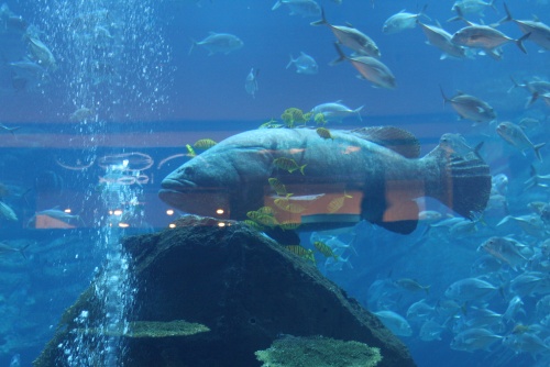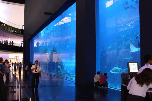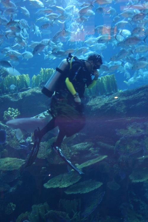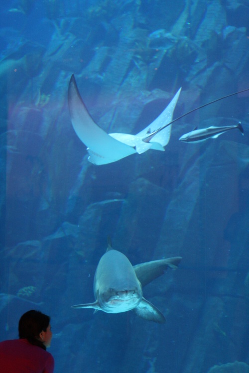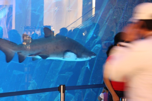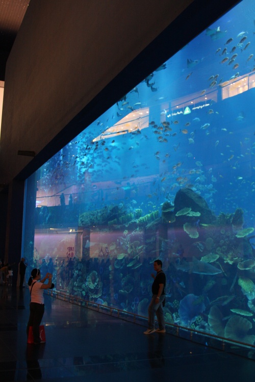 There is multiple entrances to this humungous buidling, seriously when you think they can’t make them any bigger they always do. We went in from the nice with all the nice Jewelery shops, I had to walk up to the help desk clerk to ask where the book store was and they directed me. It is three floors of stores and there is one HUGE aquarium in the middle which caught my interest.