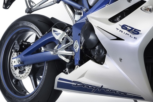 I have a Daytona 675 that I bought when it first came out, it wasn’t available in Grey so I took it in Red. It is a remarkable machine that I have always enjoyed riding, I have yet to modify anything on it. Triumph is about to debut the new Daytone 675SE which flaunts the colors of Pearl White and Sparkle Blue, and it is one beautiful machine. There have been a few modifications over the years, its still running the 126 bhp inline three-cylinder engine and they have perfected their formula to make it work. This bike will be selling for $9999 and less then 350 will be made.