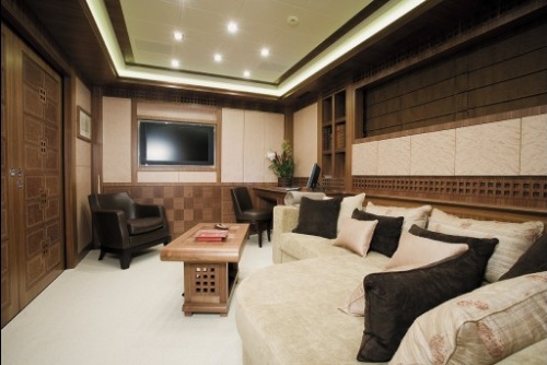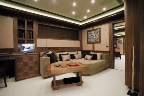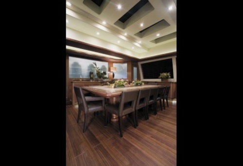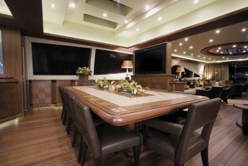Usually boats of this size that I have seen online have these tacky looks to them but this one seems to look very nice. Not the usual green and gold, but this time its a nice wood furnishing and I like the dining area. Its practically bigger then most homes, I would whats the cost of filling up the tanks of this machine.