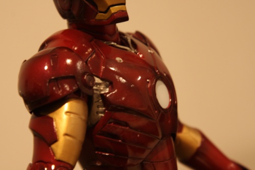 I placed Iron Man on the left front speaker, and I didn’t know until I unboxed him that there are is a switch to see the lights of the eyes and the chest plate. Its such a cool statue, I keep thinking if only I had the real life suit that this would be cooler. Its a perfect 13 inches, with a few bumps and bruises to resemble the real suit and the quality of the Kotobukiya statue is honestly amazing, every time a friend walks in I ask them what they think, the usual reaction is that its cool but when I switch on the light of the suit, there eyes pop out. I am one happy movie goer, now to only work on the getting a fully functional suit.