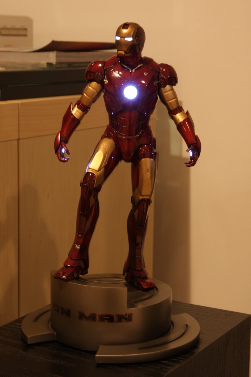 Every once in a while you find the right piece that you really don’t expect, and this came out of no where. I received the Kotobukiay Iron Man Statue for my birthday a few months back and I have had the hardest time trying to figure out where to put this amazing statue, I can’t get enough of it but I didn’t want to ruin it. I kept on trying to figure out the perfect location for it, and simply I found the perfect spot in my home theater area.
