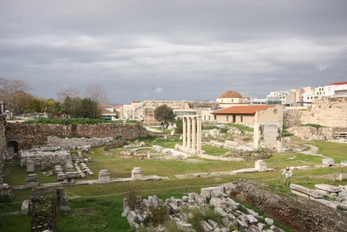 After walking some time I could feel my stomach start grumbling. The weather was perfect, cold and sunny, so Speeros told me he would take me to the perfect Kabab place to get a bite to eat. I honestly got lost from so many turns we took, luckily he knew these streets like the back of his hand. I was surprised to find the ancient ruins in the middle of all this, and its a large plot of land, nothing small, its fantastic seeing places such as these.
