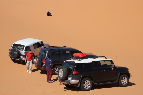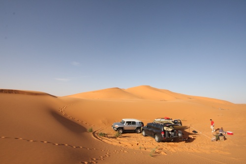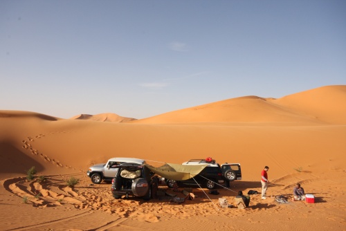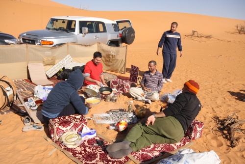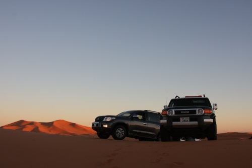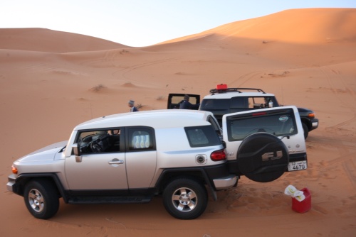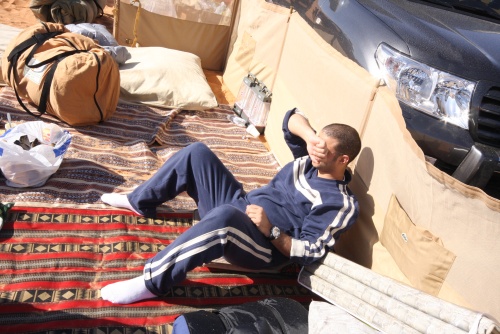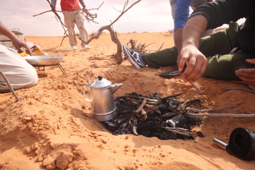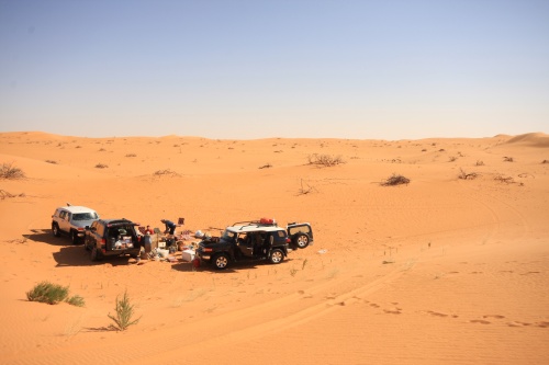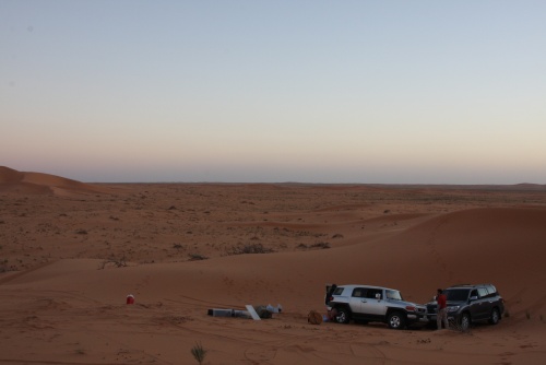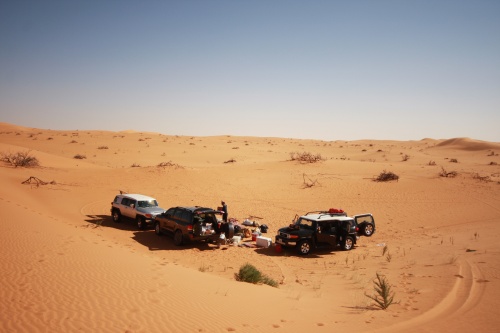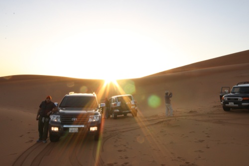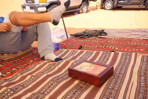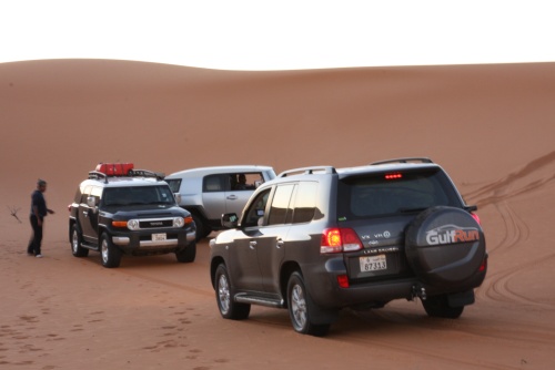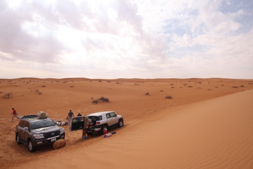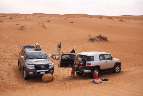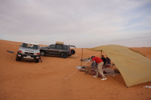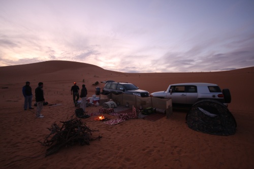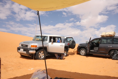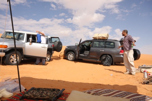 Took us about 5-6 hours to get to the first camp site, we started the fire to get some tea going, the smartest thing we did was have dinner before heading out to Saudi. You need a certain list of equipment for the cars, cooking, sleeping, precautions, and emergencies. I had an Iridium Satellite phone which was only to be used during emergencies, it looked like something out of 24 to call those bomber planes in the air. Then there was the air pump, jump start cables, battery charge unit, and tow cables. The tow cables I got were rated at 30’000 lbs with huge hooks at the end, they look menacing and we had to use it once because of an incident but I won’t mention that. Then there was a case that I was facing a flat tire in the rear tire, but we kept pumping up the tire and it would last the whole day so I decided not to change the tire, but when we got to Kuwait I found that the tire had two screws and one piece of would in it, those Yokomahas are tough tires, not the best but they did a fantastic job.