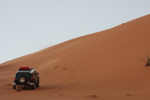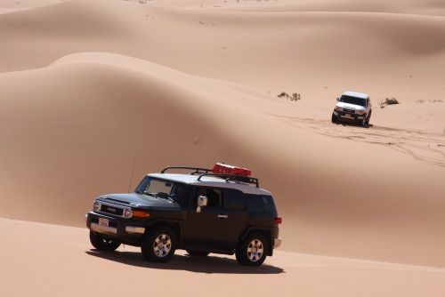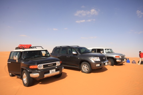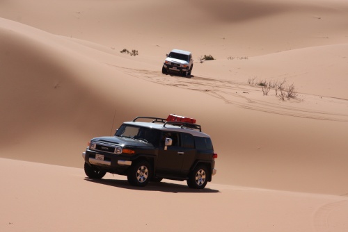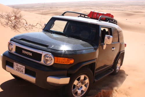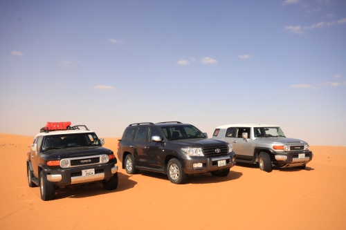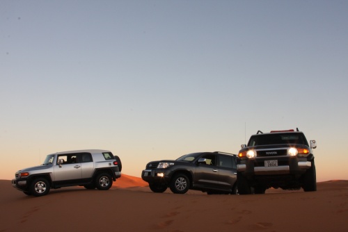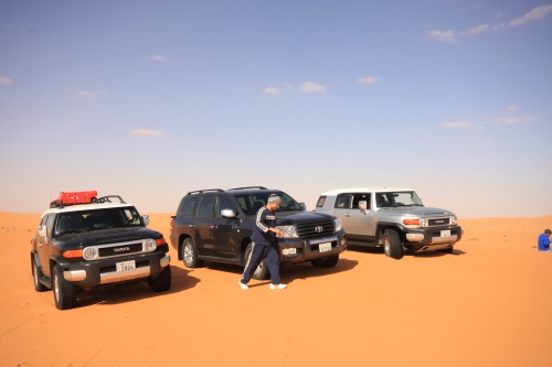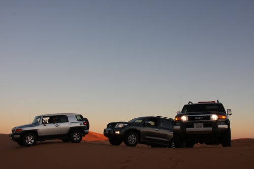 Three weeks of planning, 30 Kilograms of meat, 7 kilograms of chicken, 8 boxes of water, 4 boxes of soda, 1 Landcruiser, 2 FJ Cruisers, and 7 guys. That is what it took to make an adventure of a lifetime. The perfect group of people to take a nomad trip to the most beautiful desert in Saudi, sleeping outside in the night sky is amazing, the sky is so clear you don’t need lights at night, the moon lights up the whole area its fantastic. You feel your chest clearing up from all the fresh air coming in, no telephone signal in the areas we were in. First night we came in and found our main camp site, and for each night we had a different camp site going in deeper and deeper into the desert. We had the Garmin 276c with the updated Saudi Desert maps, so we can coordinate our locations, walkie talkies are a must for these trips, and all the fighting takes place across the radio waves.