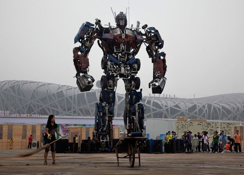 A full length 10 meter tall real scale Optimus Prime built in China, looks like they won’t be shown up by the Japan and their Gundam. They went ahead and built this amazingly detailed full scale Transformer, and the one and only Optimus Prime. Can’t believe they made something so awesome out of junk yard cars.