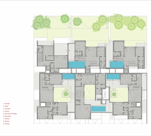 The project has been complete by AGI Architects who work in Kuwait and Spain, they really seemed to have worked on it to make these houses into the form that they are, with the combination of the white and black colors they merged the six houses on the three plots into overlapping volumes. From the pictures the house seems to have a lot of natural lighting and have been designed in a way to provide each home with its privacy yet seem as one unit, I love the underground parking I just hope it has more then two spots per garage. I’m not even sure how one person can reach the other garage but it is quite a lovely home.