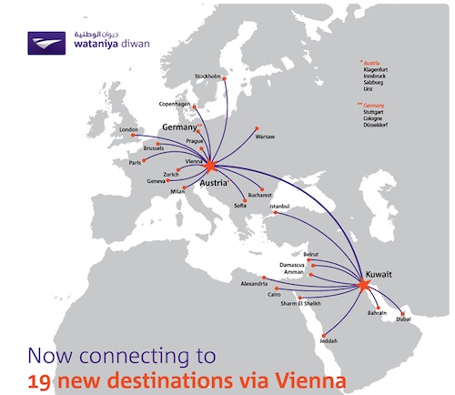 Now this is some interesting news, Wataniya Airways has signed a code-sharing program with Austrian Airlines to expand their services, that is a great step forward for them. They are now opening 19 new European destinations for very cheap rates London for 99 KD, Milan for 122 KD. Its good that Wataniya Airways is expanding at a gradual rate and being smart about it, I just hope they stay in their current location in Sheikh Saad Airport but I don’t think that the airport is enough for their flights at this point. Then there is also the idea now that Wataniya Airlines might join the Star Alliance since Austrian Airlines is owned partly by Lufthansa, well its a possibility at least.