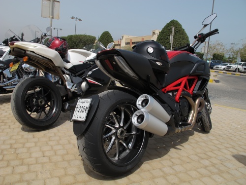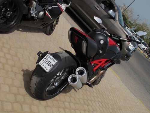 After that enjoyable ride we stopped by Marina to meet up with some of the guys and get a bite to eat. So we went to Casper and Gambini, and while I was sitting down I got a call from my friend that an idiot was sitting on my bike and taking pictures, all I saw was red at that and I was furious. We were parked on the side walked since the parking was completely full and I saw a bunch of idiots taking pictures while sitting on other bikes. Me and Kubayashi walk over there, Kubayashi is a man of few words when he is angry and my mouth is like a bull horn. About from 20 meters away I see one guy get on a Harley that didn’t belong to him to take pictures, I shouted my head off and told the guy to get the hell off the buy and walked right up to him. I told him and his friend that they can take pictures but the next guy to touch an of the bikes will have his fingers broken and my foot somewhere they don’t want it to be. I was very very very pissed, grown men were messing around and touching things that don’t belong to them. Just as I was done with them some other idiot gets on another bike by the parking and so I bark at him, and he apologized, I told him that an apology isn’t good enough, you touch another machine and I will sure its the last he touches. The whole time Kubayashi is standing behind me like an man about to rip other man’s head off. One thing bikers will not tolerate is someone touching their bike in a way that could damage it, then I saw one of the Harley guys come and he was mad as hell too. A man’s bike is something which is very personal and these are grown men, older then me, not kids. Whenever I see kids doing it I don’t mind because they are kids, and if they are nice kids I help them onto my bike for their parents to take pictures. But grown men messing around with our bikes isn’t acceptable. I was angry for a while but cooled off after a bit. It was a great day of riding, got a little hot in the afternoon but still loved the outing, except for the idiots touching the Diavel it was a great day. (What I wrote was the PG version, there were a few words flying around because I was pissed lol)