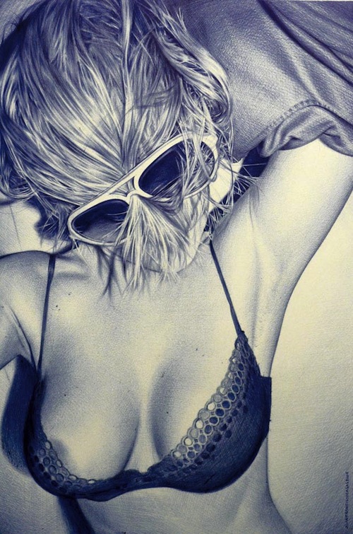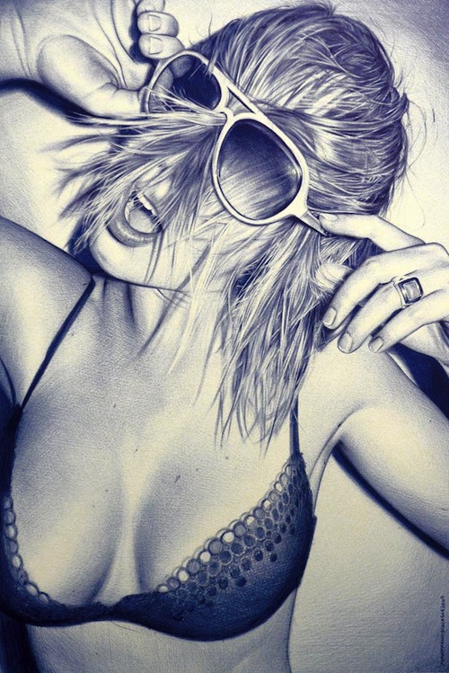 These images created by Juan Francisco Casas is nothing short of magic. He is an amazingly talented artist from La Carolina in Spain, and using ballpoint pens he creates these massive photorealisitic drawings of himself and the beautiful women in his life. I am honestly envious of his skill with the pen, I didn’t believe that these were pictures when I first saw them but his skills are fantastic.