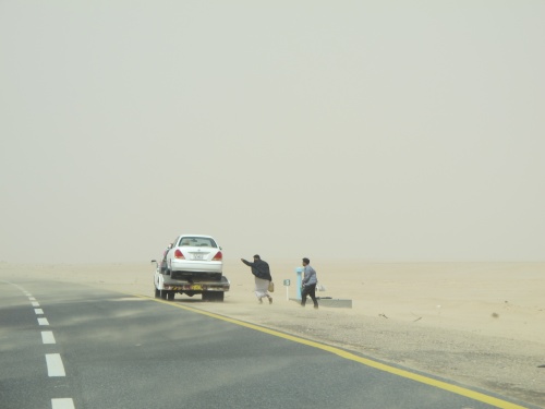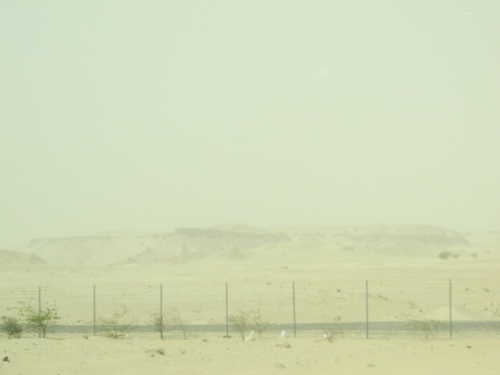 Saturday early morning we got into the car, filled it up with gas and took a few bottles water and pass Starbucks on the way. The drive is about 2 hours to the location we had in mind and I think I got caught by two speeding cameras on the way but I’m not sure of what speed it registered since I was going around 135 and they don’t usually snap at that speed. After passing Jahra it turns into an empty road and I get very surprised there is a new stretch of road that has just been finished.