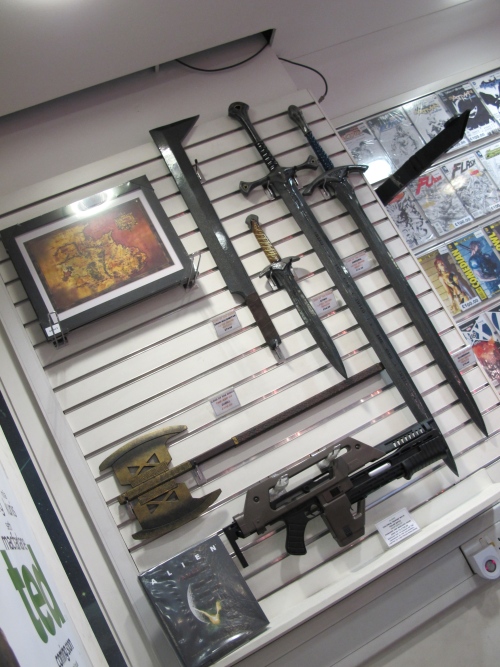 One section that people forget about is there HUGE comic and graphic novel collection down stairs, I picked up all of the novels by the comedian Kevin Smith, read a few pages and they are pretty funny and he is a funny guy so decided to take all his books. Then there is the Transformers section which have all the stuff dating back to the 80s up to the new things from IDW in 2012. They sold some fake weaponry which looked really cool but I didn’t want to risk taking that on a plane with me. When walking around upstairs I honestly don’t know what to pick up, I tell myself not to go overboard, I never have enough space in my bags but then I don’t reason well with myself and pick up a few things that I end up walking out with a smile, if your wondering what they are its the items in the last picture in this post.