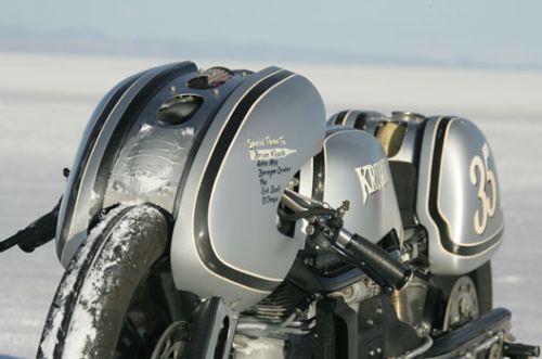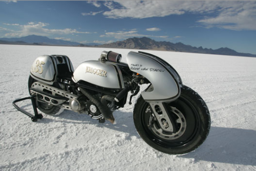 Now this is one unique machine, if I’m not mistaken it is built with a Buell engine and pretty much everything else is custom made. The rims are from a V-Rod but the body parts are hand crafted meant for use in high speed tests. The look of this machine tickles my curiousity, I wonder how it handles and feels, wouldn’t mind getting my leg over one but since its custom there probably won’t be that many of them on the road.
