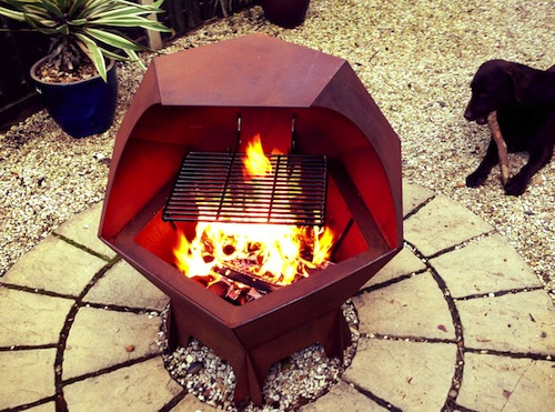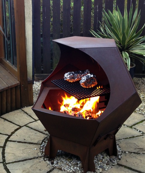 I love to BBQ but this is one of the oddest BBQs I have seen, or fire pit in this case. It is an amazingly constructed fire pit, an art piece really for the right place. I wouldn’t want to touch the metal while that pit is going, but the grill looks interesting, not fully optimized for grilling. It would be a bit tricky to cook on that, but it does look very cool.