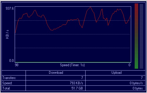 This is an example of the connection going with multiple downloads working, as you can see it peaks around 900 – 960 Kbps, when the connection was 4MB I was constantly downloading at 400 to 500 Kbps, with 7MB I’m getting a little bit more but not as stable as before. The downloads average range from 700 to 850 Kbps, but still its a lot more then before. Qnet has managed to provide a really good stable connection at this speed, meaning it doesn’t disconnect but it does slow down sometimes. I think they are working out some kinks but these speeds are pretty good for Kuwait. Now to wait for ADSL2 which is coming sometime over the next year or two to increase our bandwidth with our current MOC setup.