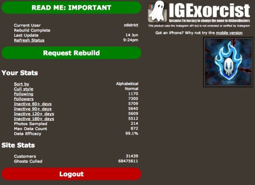 IGExcorcist is a website that helps remove bots from your accounts. It checks certain criteria and helps your account unfollow these people, but it takes about 5 to 10 minutes to remove each person. Once you activate IGExcorcist it doesn’t stop except after all the criteria is met, and in my case it took over 6 days to get rid of the bot followers, I was thankful that was done and this program was out there, I might have spent a month trying to unfollow all those bots.