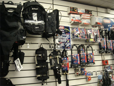 For such a small store they car a large amount of gear and accessories from Arai, Shoei, Shark, Alpinestar, Daytona, Kriega, Spidi, Hein Gericke, Data Tool, Disc Locks, Chains, maintanence tools, and cleaning products! You can spend a while there and get all you need, and the people there are nothing short of helpful. I wish they had this much gear and items in Kuwait! You can find gear cheaper online, but you have to try things on, and since the people are really cool I dont mind buying for a slightly higher price. The gear never goes old and some peoeple will buy if they are provided the option! For now I always stop by there when going through London.