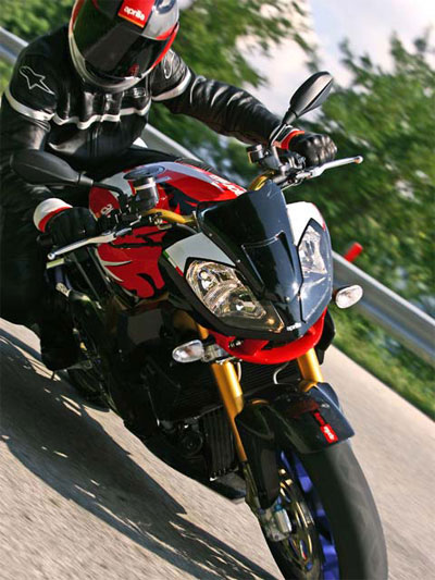 This is the revamped Tuono for 2007 from Aprillia. This is the factory edition which is packed with performance and style, with many light weight components added to this machine to make it very different then the average naked bike or Tuono. It gives supersport bikes a run for their money on the track, and handle the road just as well. A very responsive V-Twin better then the previous version. Carbon fiber panels to make it larger, with a better tweakable suspension by the addition of the Ohlin shocks and overall improvement of the engine and exhaust system. I really like what they have done with this motorcycle and I would like to test ride this motorcycle if I get the chance. They have even extended the warranty of this bike from 2 years to 4 years which is nothing short of amazing, Aprillia is stranding behind this bike.